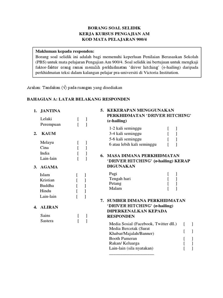 Borang Soal Selidik Kerja Kursus Pengajian Am Stpm 2016 2017 Pdf